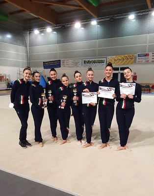 Non è stata da meno Ginevra Maria, autrice di una gara in crescendo come prestazione e come punteggi ottenuti, esaltando le sue qualità tecniche ed interpretative sia negli attrezzi Fune e Cerchio, oltre nel fondamentale Corpo Libero, salendo così sul secondo gradino del Podio .